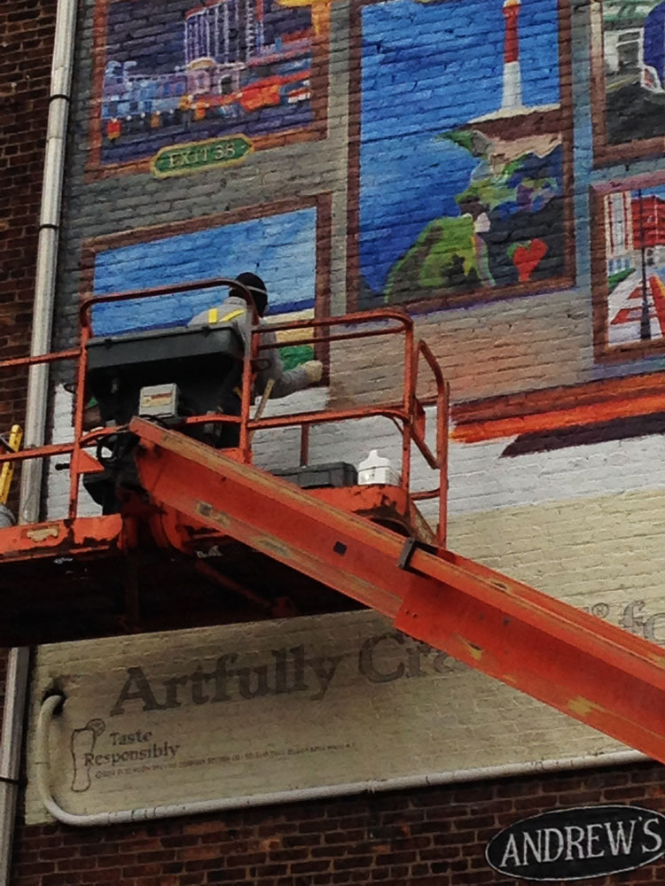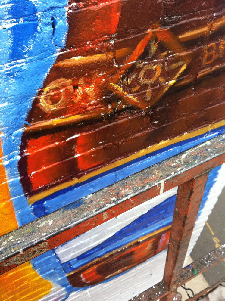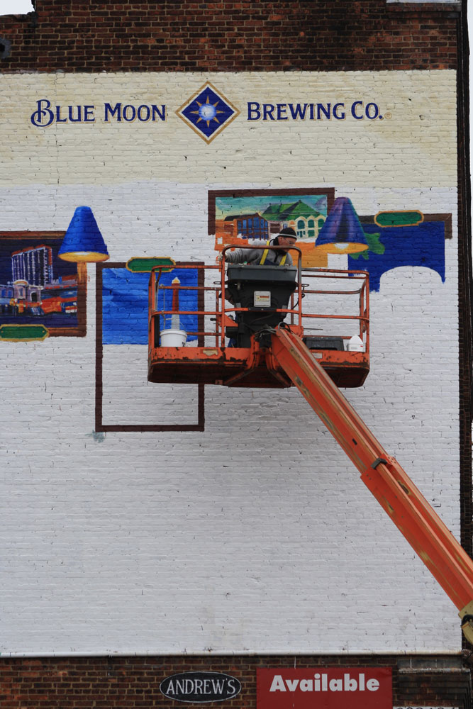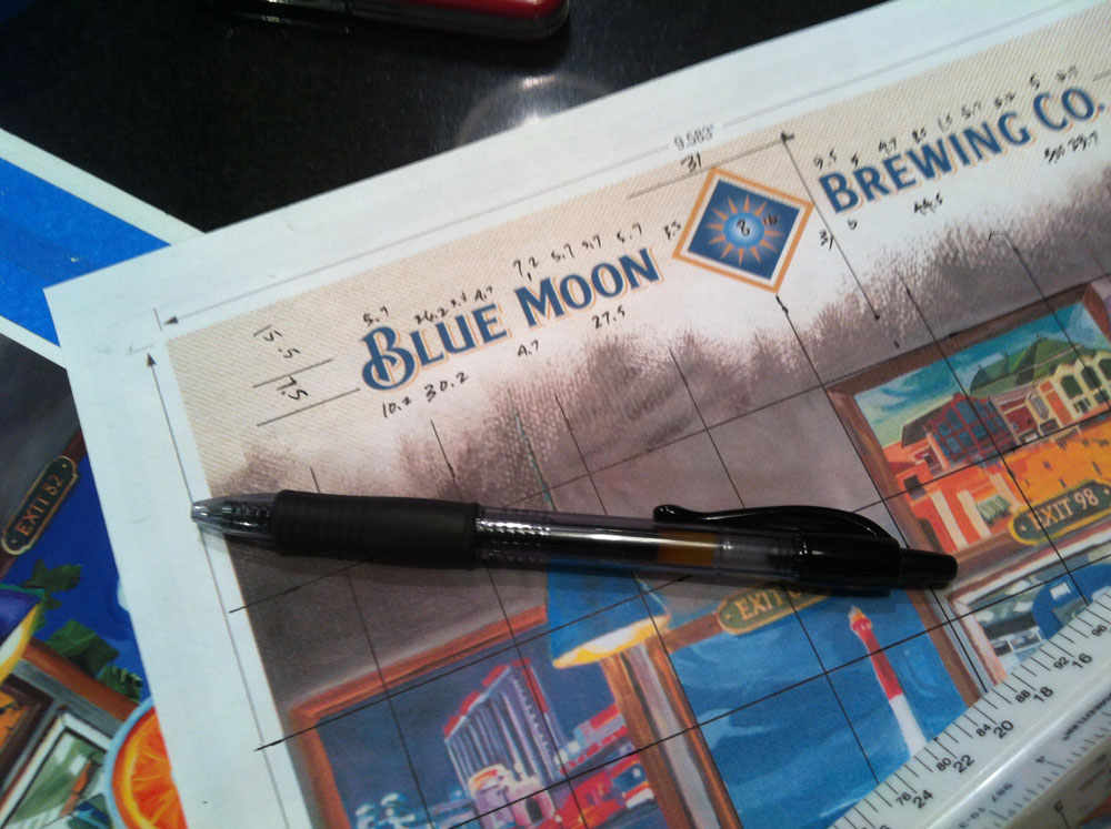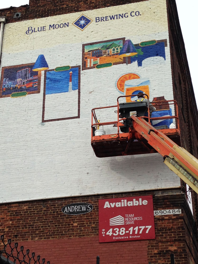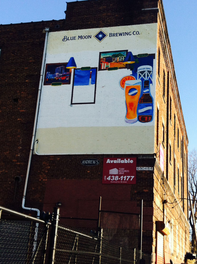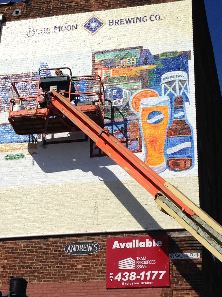 An old-school project, a 19’Wx22’H painted wall sign in Newark NJ. Client: Blue Moon Brewing